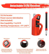 512Hz Pipe Locator Receiver and 512Hz Sonde Transmitter with Self Leveling for Pipe Inspection, Drain Camera Tools for DIYer or Replacement, for Pipe Inspection Camera