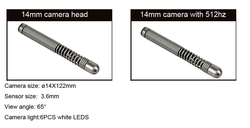 14mm Pipe Drain Sewer Camera Head Flexbile Long Spring Stainless Steel 6LED Lights Industrial Endoscope Camera Head
